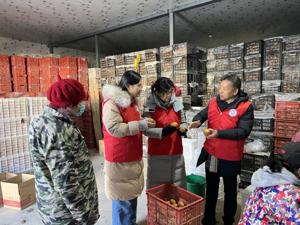 本次技术服务主要是调研金珠沙梨的采收、贮藏和鲜果销售情况,指导果农进行合理贮藏。近期天气寒冷,果蔬贮藏防冻至关重要,科技特派员服务队来到冷库实地查看金珠沙梨的贮藏情况,针对冷库适宜的贮藏温度、湿度进行技术指导,并对贮藏过程中通风换气的重要性及操作方式进行了指导。交流中,基地总经理李应贤介绍了金珠沙梨加工制品的研究进展,提出目前基地冷库制冷系统存在的问题,希望学会可以派专家维修改造。科技特派员鲍琳副教授表示,下一步将派专业团队解决冷库制冷系统问题,并制定洛宁县金珠沙梨冷链物流操作规程、洛宁县金珠沙梨分级标准,为金珠沙梨产业的规范化发展提供依据。