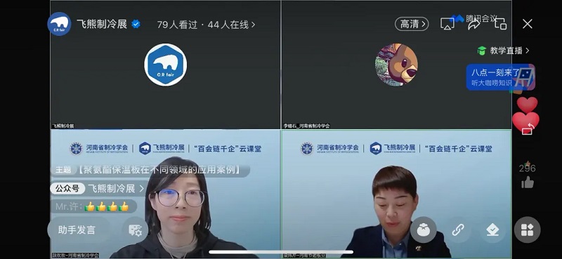 2024年3月19日,由河南省科学技术协会指导,河南省制冷学会和飞熊制冷展组委会联合主办了“百会链千企”云课堂第十三期,主题为“聚氨酯保温板在不同领域的应用案例”,并取得圆满成功。本次活动特别邀请了河南节诺板业有限公司总经理梁炜芹担任主讲嘉宾,河南省制冷学会科宣部部长段欢欢主持。本次活动受到了业界同行的广泛关注,直播观看量超过了2000人次。