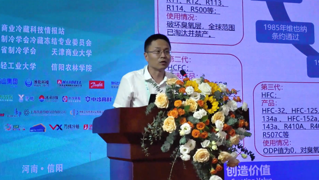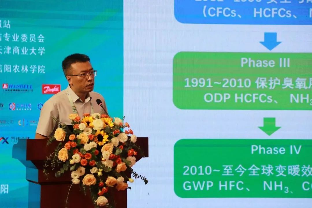 制冷剂替代及减量专题研讨会环节由郑州轻工业大学能源与动力工程公司经理吴学红教授、天津商业大学机械工程公司经理刘圣春教授共同主持。天津商业大学孙志利教授、华商国际机电院副总监李坤、冰山冷热冷冻冷藏技术总监李大鹏、冰轮环境工控事业部部长任大伟、丹佛斯工业制冷应用技术经理黄志华、上海汉钟精机课长高月明分别以“工业制冷系统制冷剂减量技术及信息化发展”、“冷库制冷系统技术升级路径与发展前景”、“绿色制冷剂及低充技术应用”、“数智赋能冷链产业冷热系统迭代升级”、“NeoCharge--提升制冷系统安全与效率的解决方案”、“压缩机在多温区冷库项目建设运营中的成效管理分析”为主题做报告分享。