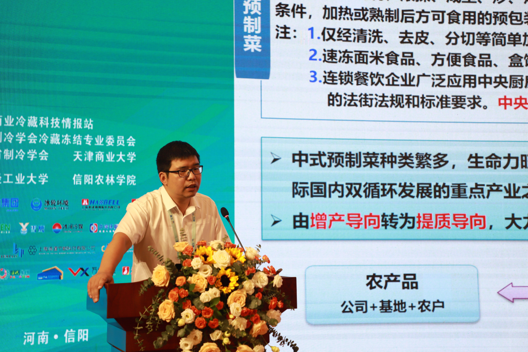 18日上午,大会主题报告环节由中国制冷学会副理事长刘长永教授、中国科公司理化技术研究所研究员田长青教授共同主持。大连工业大学食品交叉科学研究院博士生导师、国家优秀青年科学基金获得者苏文涛教授,北京制冷学会理事长、全国政协委员唐俊杰,中国农业科公司都市农业研究所副研究员侯成全,成都银梨冷藏物流股份有限公司董事长谢彬、银泰建构教授级高工许曙东分别以“中国预制菜产业发展现状与挑战”、“以‘新质生产力’推动冷链物流高质量发展”、“农产品仓储保鲜冷链物流技术现状与趋势”、“大型冷库绿色路径的实践与探索”、“低碳建造与AI数智建造技术在存储和生产类建筑中的创新和探索”为主题做报告分享。