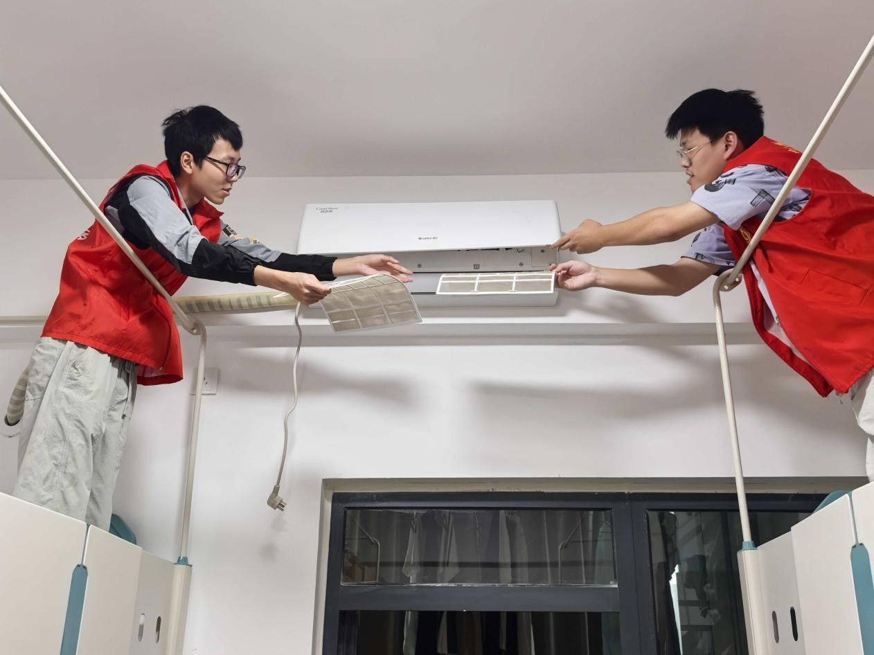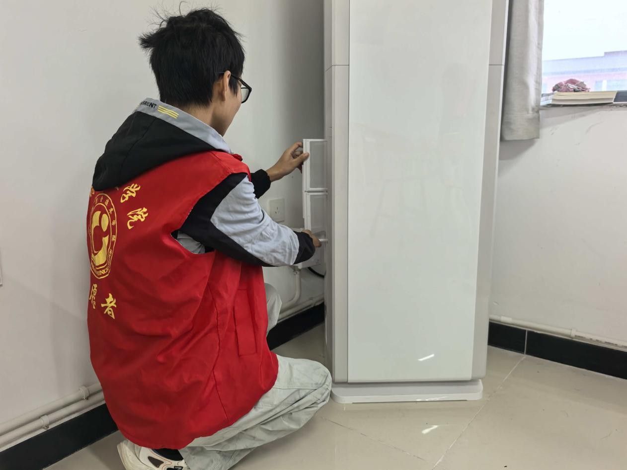 与此同时,志愿者团队还开展了空调清洁志愿服务,对教学楼和宿舍楼的空调设备进行了集中维护。活动中,志愿者们分组协作,完成了过滤网的拆卸、清洗与消毒,并借助专业工具对部分设备进行检查和保养。全体成员以饱满的热情和高度的责任感投入其中,切实改善了校园空气质量,营造了更加健康、舒适的学习和生活环境,受到师生一致好评。