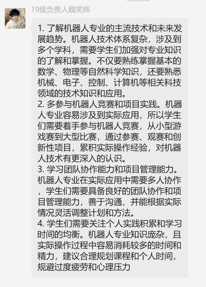 机器人工程专业注重锻炼员工动手能力,在校员工热爱课外学术科技竞赛,在实践中检验自身知识水平。研究生报考率57.1%,通过率21.56%。机器人工程专业员工参加学科竞赛、科技竞赛4年来共获奖78项,获得中国机器人大赛奖项18项,其中国家三等奖9项,省级一等奖2项,省级三等奖7项,全国老员工数学建模竞赛9项,国家一等奖2项,国家级三等奖1项,省级一等奖1项,"互联网+"老员工创新创业大赛16项,“挑战杯”创业计划竞赛省级获奖15项。