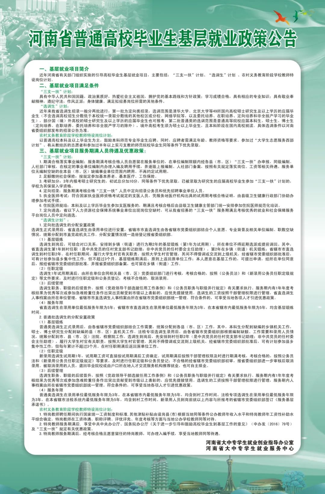 就业政策|河南省普通高校毕业生基层就业政策公告
